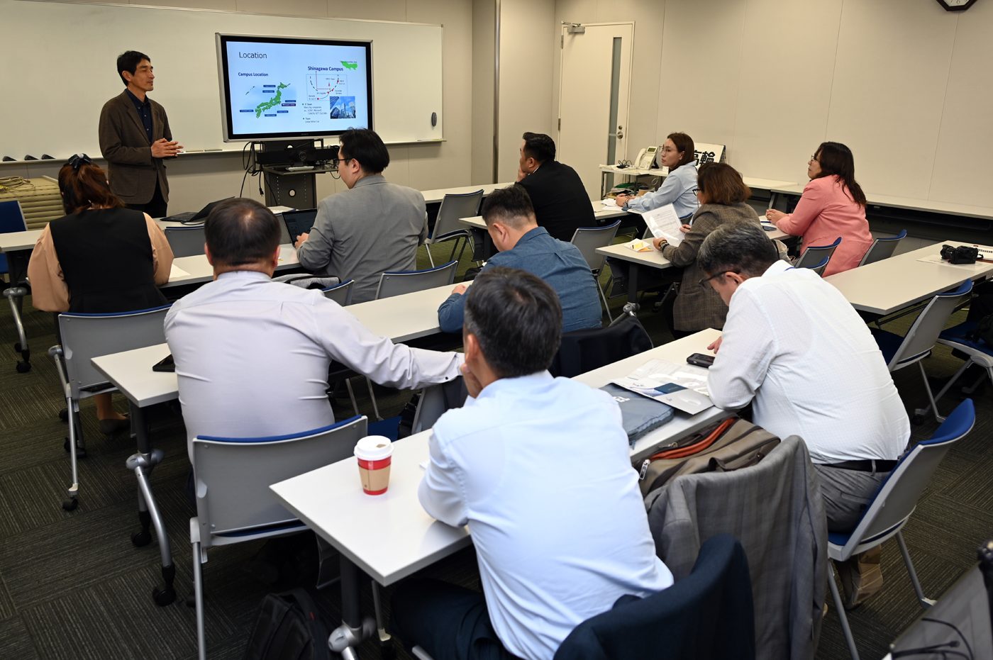 品川キャンパスに10月28日、モンゴル科学技術大学の研修団が来訪しました。日本の大学における教育・研究の現状への理解を深めることを目的としたもので、本学では国際協力機構(JICA)からの依頼を受けて協力しています。