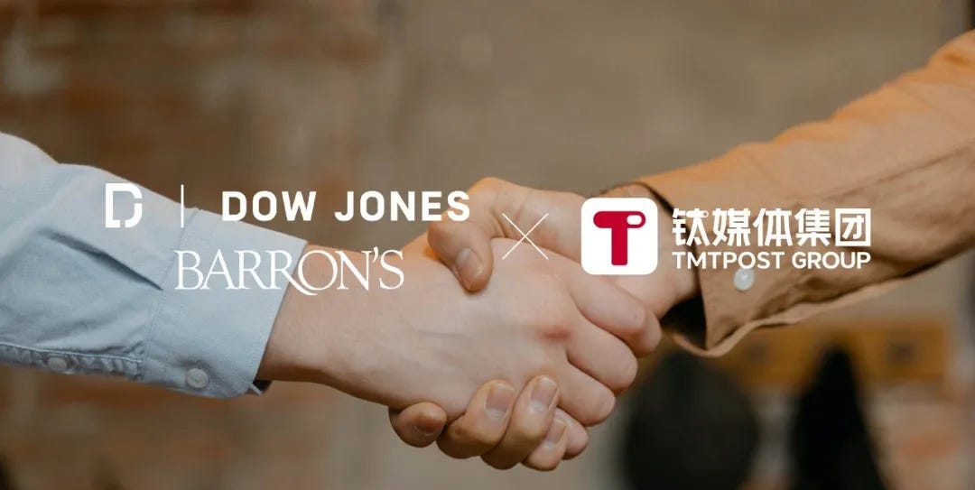 Although TMTPost’s April announcement said “TMTPost and Dow Jones officially and jointly announce” their cooperation, it appears that Dow Jones hasn’t publicized the move.