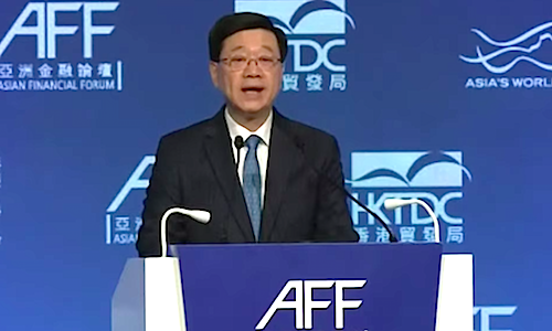Hong Kong chief executive John Lee spoke in the opening speech of the Asian Financial Forum 2026, boasting about the city’s recent business accomplishments.