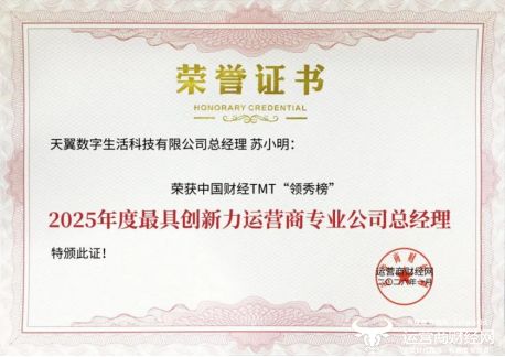1月29日,在由运营商财经网举办的2026中国财经TMT“领秀榜”盛典中,天翼数字生活公司荣获2025年度优秀运营商专业公司、2025年度运营商最受关注的AI智能终端产品、2025年度智慧家庭市场创新引领企业等多个奖项。