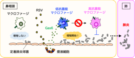 【東京医科大学】RSウイルス感染が「鼻の奥にすみつく肺炎球菌」を増やす仕組みを解明 ~免疫細胞に “ブレーキ” をかけるGas6の働きに着目~