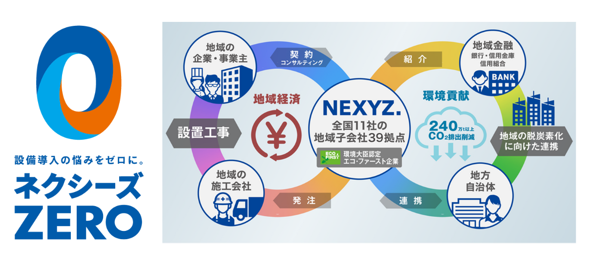 初期投資0円・月額払いによる「ネクシーズZERO」が地域企業に普及・浸透することで、設備更新が加速し、CO₂排出削減とコスト最適化、さらには地域内経済循環(エコシステム)の創出につなげてまいります。