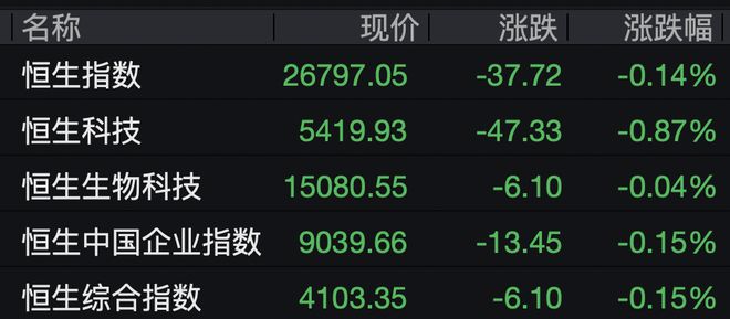 2月4日,港股低开,恒生指数跌0.14%,恒生科技指数跌0.87%。