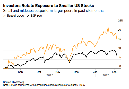 近期,出于对人工智能(AI)技术冲击的担忧,投资者正加速撤离科技股,转而寻找能从特朗普政府降低生活成本举措中获益的投资标的。与此同时,对经济增长前景改善较为敏感的各类企业,其表现也普遍优于大盘。
