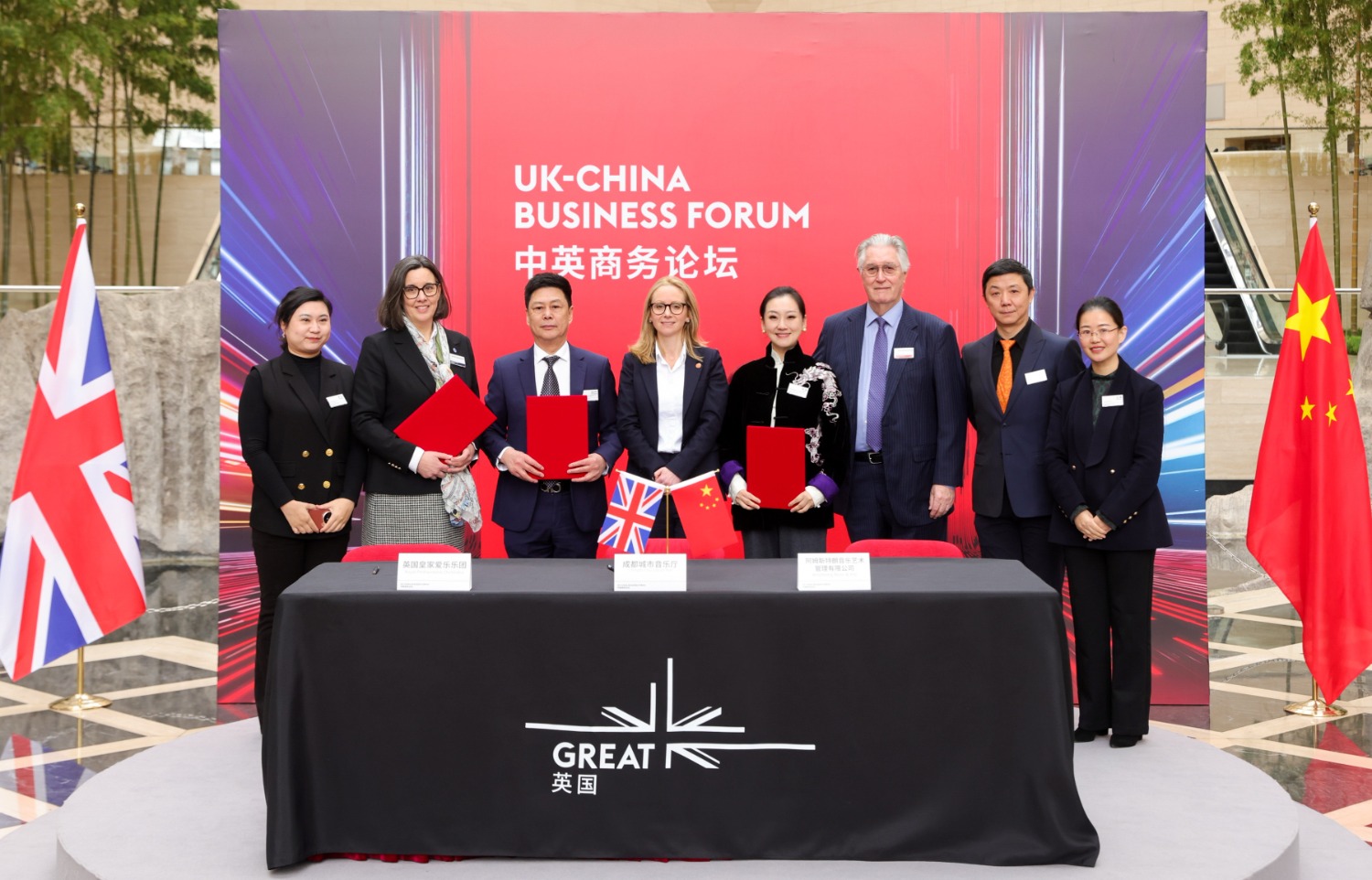 In addition, two strategic Memoranda of Understanding signed between the Royal Philharmonic Orchestra (RPO) and the Chengdu City Concert Hall and Wuxi Symphony Hall became a cultural highlight of the forum. The signing ceremony was witnessed by Lucy Rigby KCPM, UK Ecmomic Secretary to the Treasury; Wray Armstrong, Chairman of Armstrong Music & Arts; and Hu Xiao, Deputy General Manager of Chengdu City Concert Hall. RPO Managing Director Sarah Bardwell and Armstrong Music & Arts CEO Evita Zhang signed the agreements respectively with Wang Yiping, Chairman of Chengdu City Concert Hall, and Zhan Miao, General Manager of Wuxi Symphony Hall.