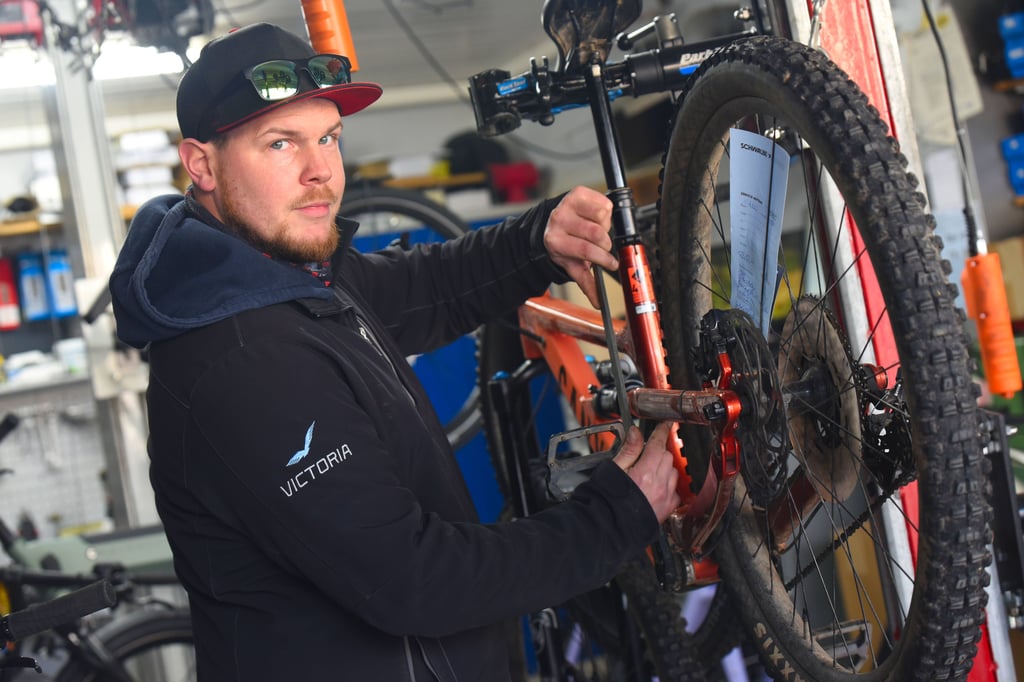 Marcus Berger hat sein Fahrradgeschäft noch nicht aufgeschlossen, da stehen die ersten schon vor der Tür. Ein älterer Herr hat Probleme mit der Schaltung seines E-Bikes, und ein anderer möchte den Leasingvertrag fürs Rad seiner Frau verlängern.