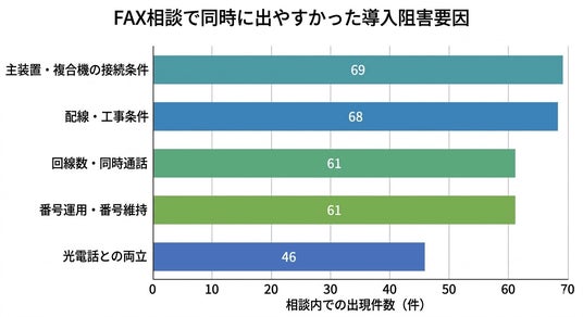■ 見えてきたのは「FAXを残すか」ではなく「FAXを残したまま業務が回るか」 相談記録では、「今の番号をそのまま使えるか」「FAX接続工事は見積もりに含まれるか」「FAX送信時に電話回線が塞がるのか」といった相談が多く確認されました。