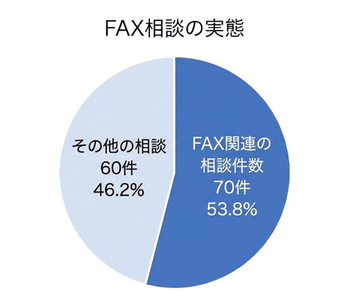 その結果、FAXに関する相談は70件、構成比は53.8%となり、半数超の相談でFAXが電話設計の条件として残っていることが分かりました。