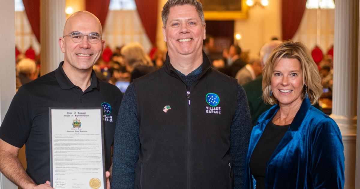 BENNINGTON — On March 18, Village Garage Distillery’s founder Matt Cushman, director of sales Douglas Goble, and head of marketing Tom Remp were in attendance at the Vermont State House for the reading of H.C.R.187, a House concurrent resolution congratulating VGD on “winning a silver medal at the 2025 San Francisco World Spirits Competition for Bonfire … a smoked maple bourbon.” Village Bonfire is available in 802Spirits stores across Vermont, select stores in New York and Massachusetts, and online through villagegarage.com.
