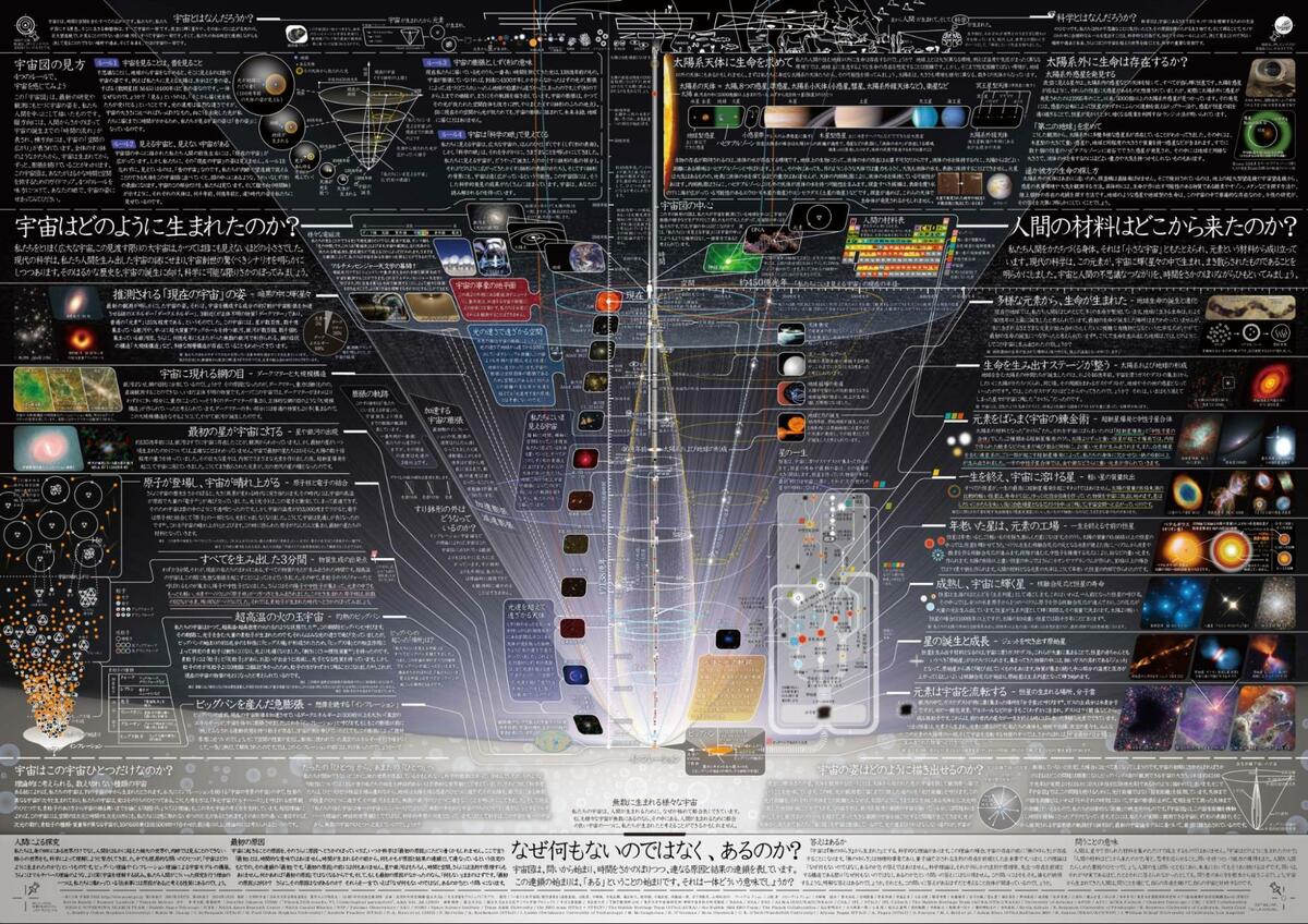 宇宙図は、文部科学省が発行した『一家に1枚』シリーズ第1弾「元素周期表」、第2弾「ヒトゲノムマップ」に続く第3弾として企画されました。