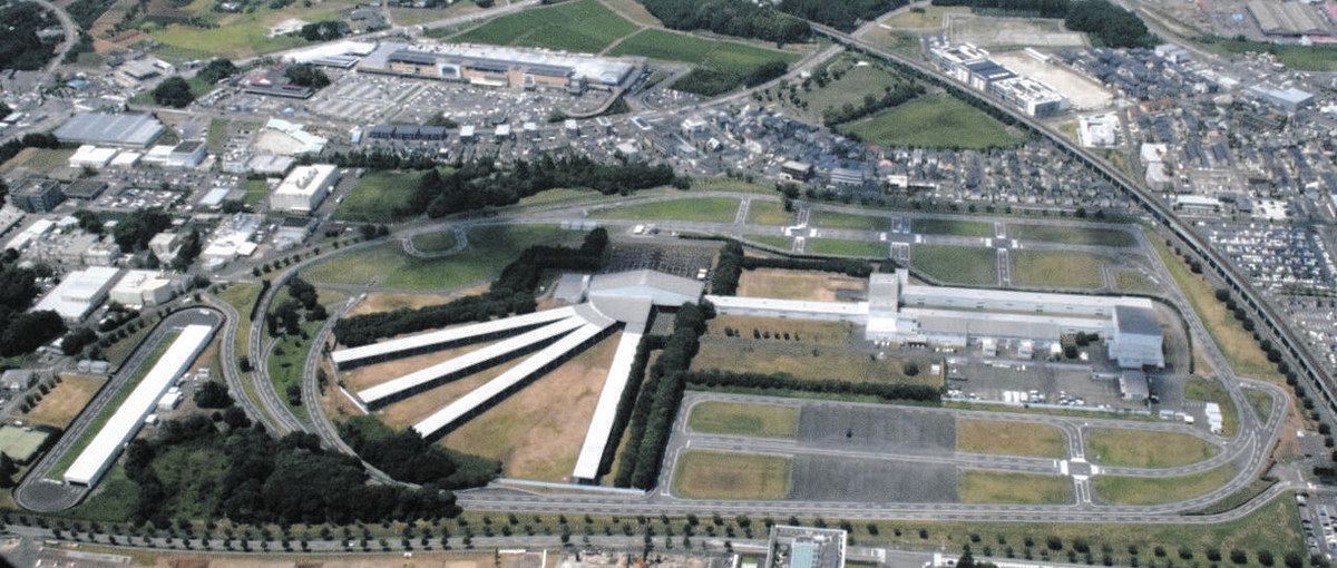 18日に公開される日本自動車研究所の施設=つくば市で、本社ヘリ「あさづる」から